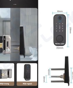 – Chức năng: Cài đặt, quản lý, mở cửa, xem lịch sử qua app điện thoại (bluetooth), có thể mở rộng quản lý từ xa qua mạng (gateway).